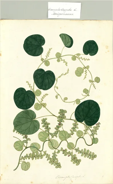 La Cissampelos glaberrima es una planta trepadora o liana de la familia Menispermaceae, caracterizada por su hábito de crecimiento voluble, lo que significa que utiliza estructuras de soporte para ascender hacia la luz. Aunque la descripción morfológica detallada de esta especie específica es limitada en la literatura técnica, se identifica como una planta de tallos leñosos en su base que se vuelven herbáceos hacia las puntas.