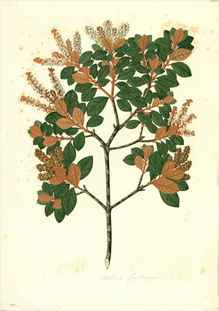 La Clethra fimbriata es una especie arbustiva o arbórea perteneciente a la familia Clethraceae, caracterizada por una morfología robusta y adaptativa. Su aspecto general se define por un sistema de ramificación complejo que le otorga una estructura densa, ideal para la captura de luz en entornos de sotobosque o bordes de bosque. Las hojas de esta especie presentan una disposición que optimiza la fotosíntesis, con una textura que varía según la madurez del tejido, siendo generalmente persistentes o semiperennes dependiendo de las condiciones microclimáticas locales.