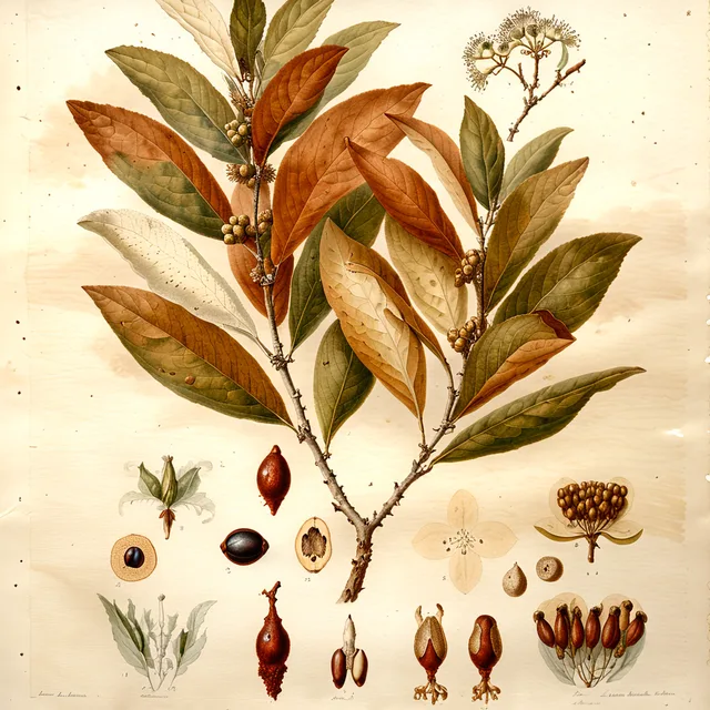 La Laurus caustica es un espécimen arbustivo o arbóreo de porte mediano que pertenece a la familia de las Lauráceas, caracterizándose por una estructura robusta y una presencia imponente en su ecosistema. En términos de altura, esta planta suele alcanzar entre los 3 y los 8 metros de elevación, dependiendo de la densidad de la competencia lumínica en su hábitat. Su tronco presenta una corteza rugosa de color grisáceo oscuro, que con la edad desarrolla fisuras longitudinales profundas.