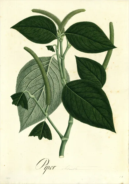 Flores: La inflorescencia es de tipo espiga, pequeña y compacta, dispuesta de forma axilar o terminal. Las flores son diminutas, de coloración blanquecina o verdosa, y carecen de pétalos vistosos, ya que la función de atracción se centra en la estructura de la espiga.